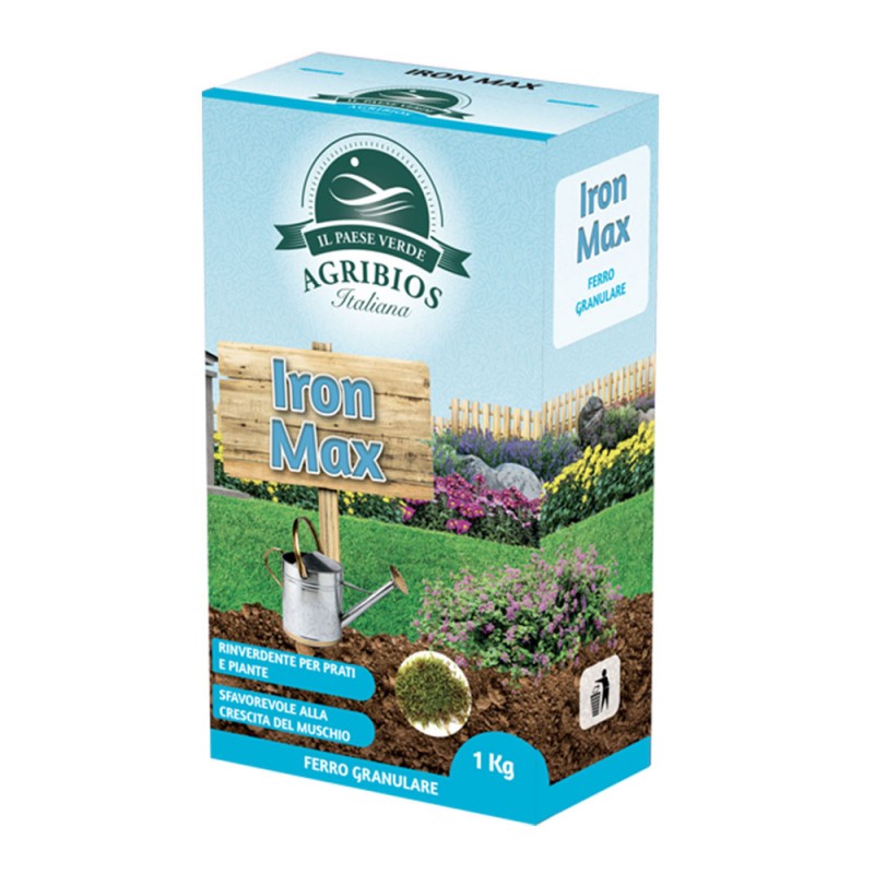 DESCRIZIONE IRON MAX è un concime granulare ricco di ferro, magnesio e zolfo ideale per prevenire e curare la clorosi ferrica delle piante, la quale si manifesta con il classico ingiallimento internervale delle foglie. Apportando elementi indispensabili per il processo di fotosintesi, IRON MAX sviluppa uno straordinario effetto rinverdente su prati, fiori e piante. Inoltre grazie al suo ph acido svolge un’azione acidificante del terreno, indispensabile per tutte le piante acidofile (azalee, ortensie, camelie, gardenie) ma benefica anche per le altre colture in quanto favorisce l’assorbimento degli elementi nutritivi. Infine, IRON MAX limita la diffusione del muschio.
