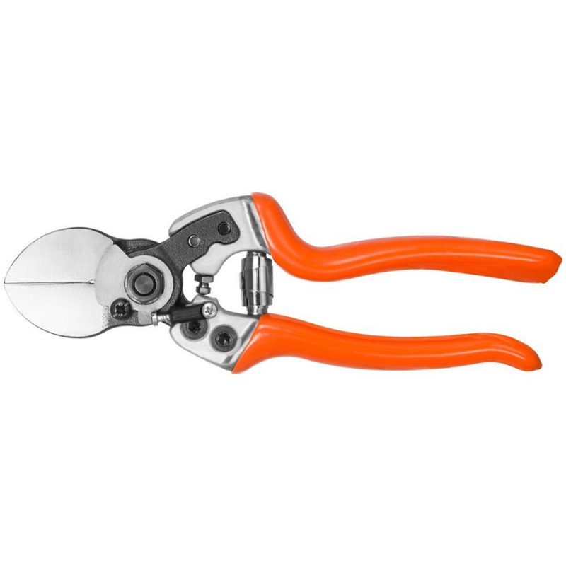 Forbice a doppio taglio, perfetta per la potatura delle piante da frutto e degli olivi. Il peso estremamente leggero di soli 240 g e la forma ergonomica del manico diminuiscono l'affaticamento della mano dell'operatore. Ergo Light 21 permette di effettuare tagli precisi fino ad un diametro di 22. È dotata di un'affilatura asimmetrica centrale, cioè su un lato è piatta. Questo permette all'hobby farmer di effettuare i tagli vicino al tronco.