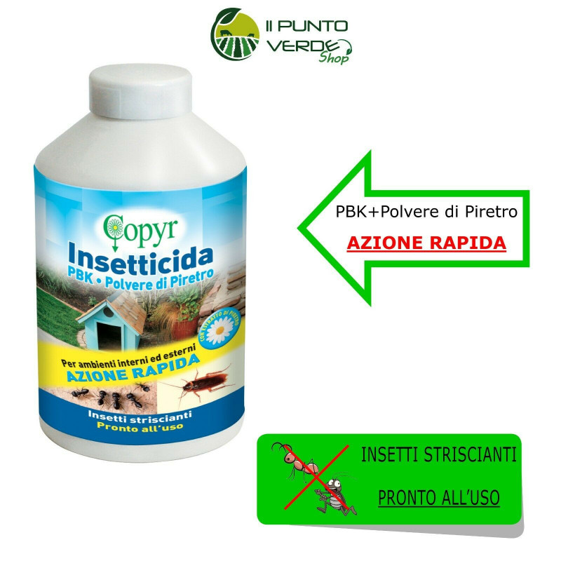 Pyregreen è un insetticida naturale a base di piretro, con azione rapida e non residuale, ideale per ambienti civili, industriali e domestici. Efficace contro insetti volanti (mosche, zanzare, vespe) e striscianti (formiche, blatte, pulci, tarme), può essere utilizzato anche in industrie alimentari, ospedali, scuole, giardini, e nel settore dei trasporti.