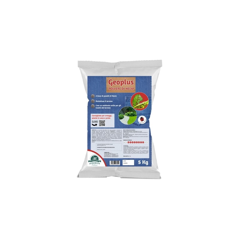 GEOPLUS è un concime innovativo che nutre le piante e favorisce lo sviluppo della flora microbica del suolo. La polvere di Neem manifesta un’azione rivitalizzante dei terreni riducendo i problemi legati ai parassiti del suolo.