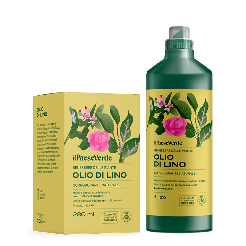 DESCRIZIONE OLIO DI LINO è un olio vegetale ottenuto dalla spremitura a freddo dei semi di Linum usitatissimum precedentemente essiccati o tostati. OLIO DI LINO favorisce il potenziamento delle naturali difese della pianta migliorandone la resistenza da attacchi esterni, in particolare degli insetti come le cocciniglie. OLIO DI LINO può essere usato su fiori, ortaggi, piante ornamentali e da frutto in qualsiasi fase vegetativa.