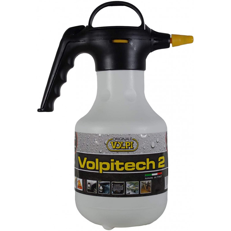 La pompa a precompressione Volpitech 2 è dotata di un recipiente di 2 litri, pressione massima di 2 bar, e l'ugello è in polipropilene regolabile. È stata progettata per impieghi alternativi, soprattutto per l'utilizzo industriale. Può nebulizzare fertilizzanti, antiparassitari, detergenti, impregnanti, vernici, lucidanti, ecc. Grazie alle guarnizioni in FPM, specifiche per quei prodotti che sarebbero aggressivi alle normali guarnizioni in gomma. La Volpitech 2 è completa di scarico pressione e polverizzatore orientabile. Il peso netto è di 0,5 kg.