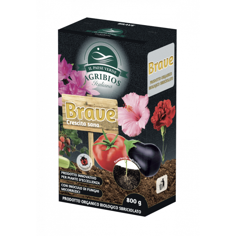 DESCRIZIONE BRAVE Crescita Sana è un prodotto organico altamente innovativo, studiato per nutrire gli ortaggi, le piante aromatiche, da frutto e ornamentali in modo completo ed eccezionale. La sua speciale formulazione, a base di sostanza organica umificata, batteri della rizosfera e inoculi di funghi micorrizici, è risultato della consolidata esperienza in campo professionale di Agribios Italiana, in collaborazione con importanti istituti di ricerca. La sostanza organica di BRAVE Crescita Sana, infatti, migliora la fertilità del suolo e favorisce l’assorbimento degli elementi nutritivi. BRAVE Crescita Sana, ricco di acidi umici, stimola la radicazione e la simbiosi tra apparato radicale e funghi micorrizici che comporta un utilizzo efficiente dell’acqua da parte delle piante e una maggiore resistenza a stress di vario genere (attacchi parassitari, fungini, idrici e termici).