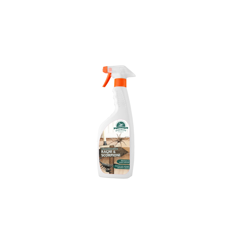 Disabituante ragni e scorpioni è un prodotto studiato specificatamente per tenere lontano ragni, scorpioni e acari in modo totalmente naturale. A base di una miscela di oli essenziali, il prodotto sviluppa un'azione particolarmente sgradevole a questi insetti, in modo da prevenire la loro presenza negli ambienti trattati. Il prodotto, in confezione trigger, è già pronto all'uso e non va diluito ulteriormente in acqua. Se usato correttamente, è innocuo per animali domestici, persone e per l'ambiente in cui vivono.MODO D'USO